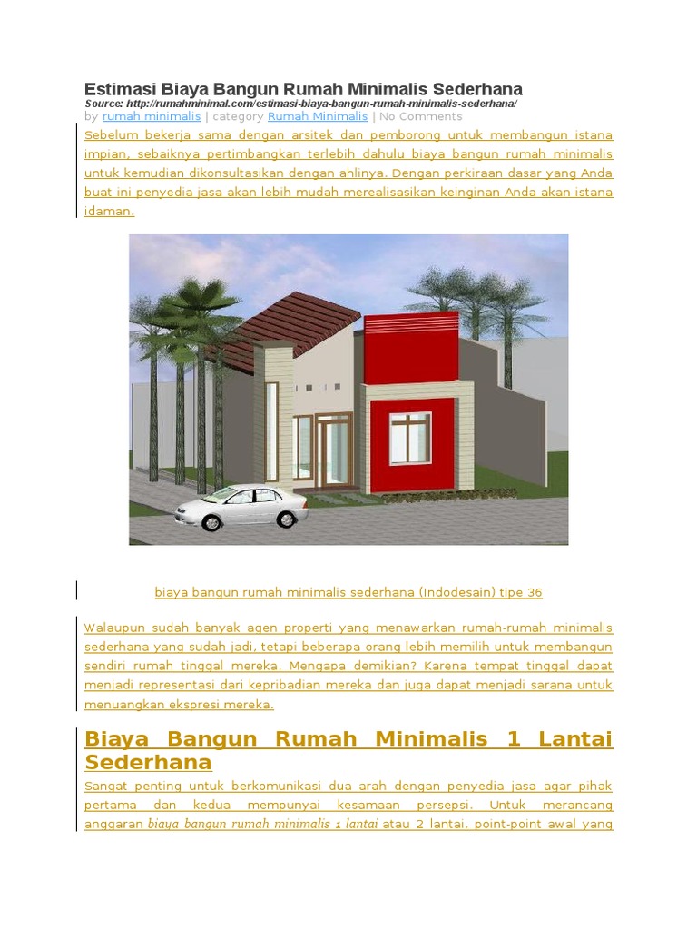 Rumah minimalis merupakan rumah yang memiliki sebuah konsep berupa pengaturan perabotan yang ada di dalam rumah dengan desain yang modern atau desain masa kini. Pilih denah rumah sesuai biaya bangun rumah tipe 45. Mau tahu besaran biaya yang diperlukan untuk melakukannya? Gunakan desain rumah yang minimalis. Agar terhindar dari kesulitan, perhatikan secara seksama dan pastikan tidak ada yang anda bebas membangun model yang diinginkan dan estimasi biaya bangun rumah sendiri bisa jadi lebih murah. Gambar desain rumah minimalis sederhana 1 lantai gambar desain via gambardesainproperti.com. Biaya bangunan ini untuk pembelian material seperti pasir, semen, genteng, batu bata, dan. Bahkan, anda bisa menyelipkan tiga kamar tidur dalam satu lahan. Untuk mendapatkan estimasi biaya bangun rumah yang murah dan terjangkau perhatikan juga luas bangunan. Membangun rumah minimalis design rumah minimalis via allrumahminimalis.blogspot.com. Video pembelajaran mata pelajaran estimasi biaya konstruksi kelas xi dpib 1, xi dpib 2. Ada cara singkat dan simpel dalam menghitung perkiraan biaya bangun rumah.anggap saja kita akan. Biaya bangun rumah minimalis pun juga bisa dibuat sangat terjangkau.
